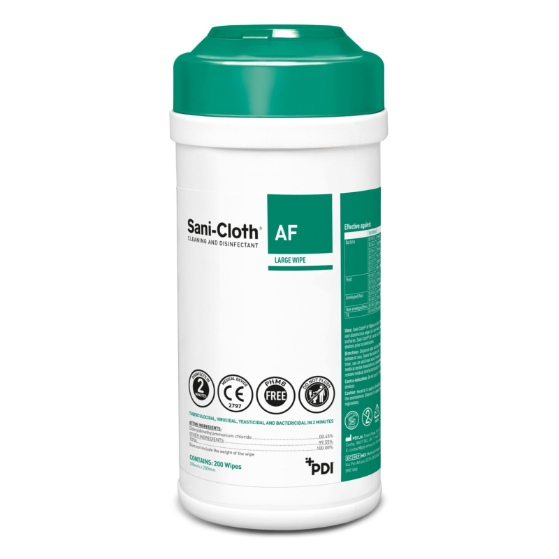 PDI Sani Cloth Universal chusteczki dezynfekcyjne, 200x200 mm tuba a'200 szt. Bezalkoholowe chusteczki do mycia i dezynfekcji małych powierzchni i sprzętu medycznego, również delikatnego sprzętu jak np. głowice USG.